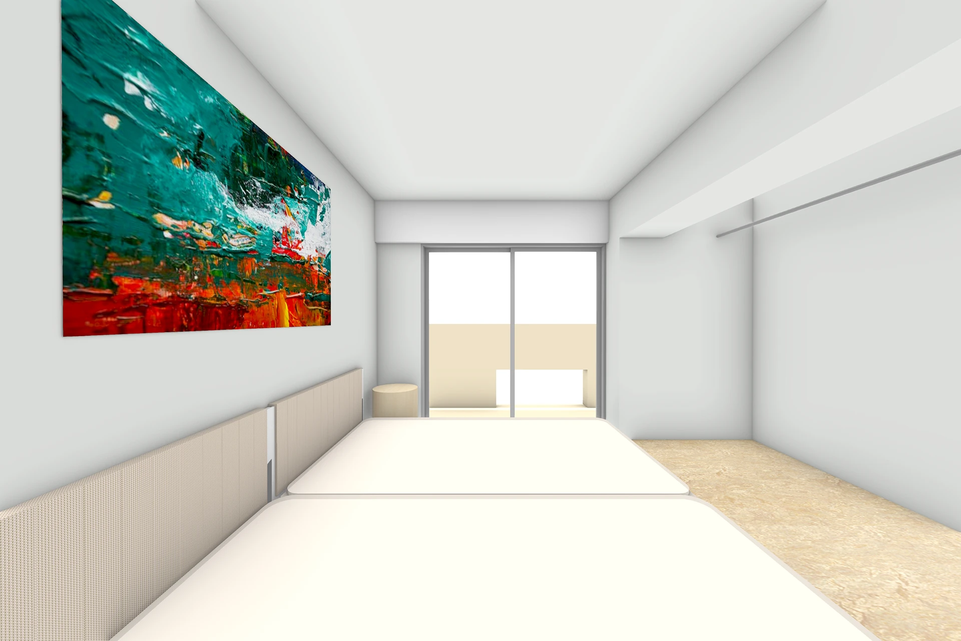 壁は白くすることでアートが映える構成とし、緑とアートを引き立たせ、居心地の良い空間を目指しました。